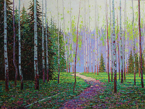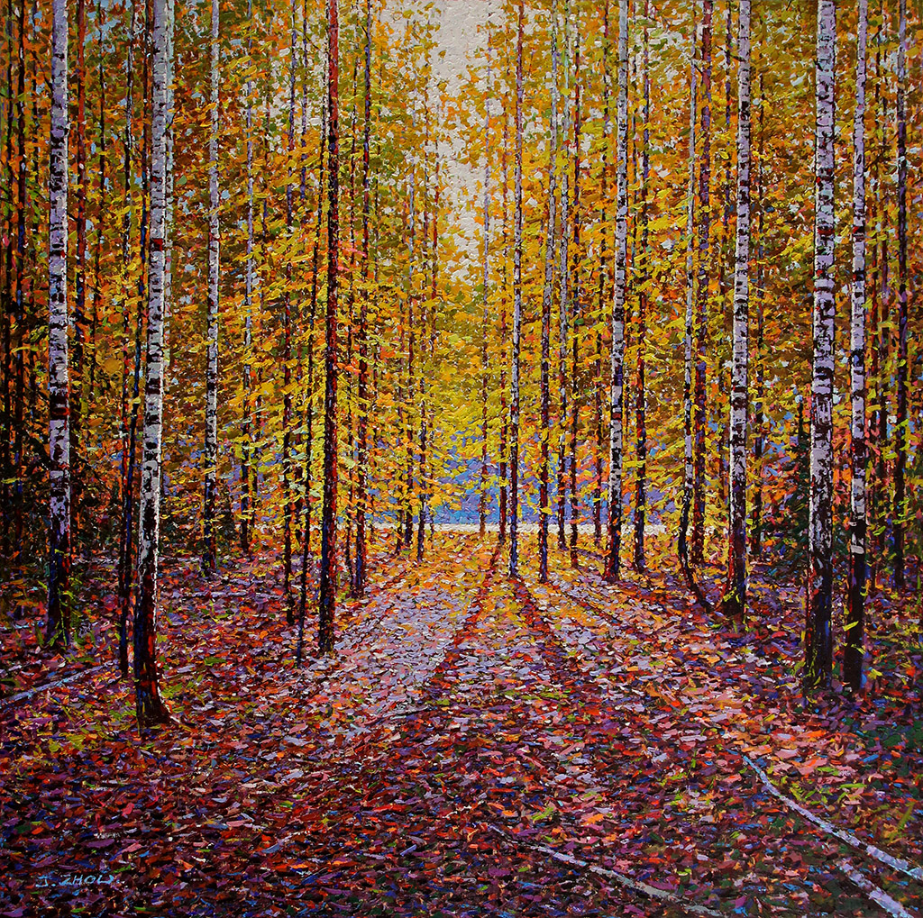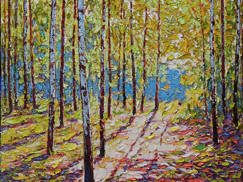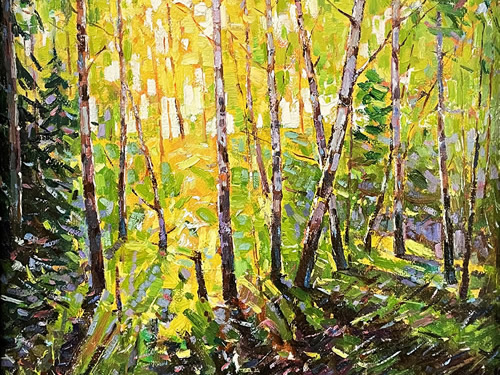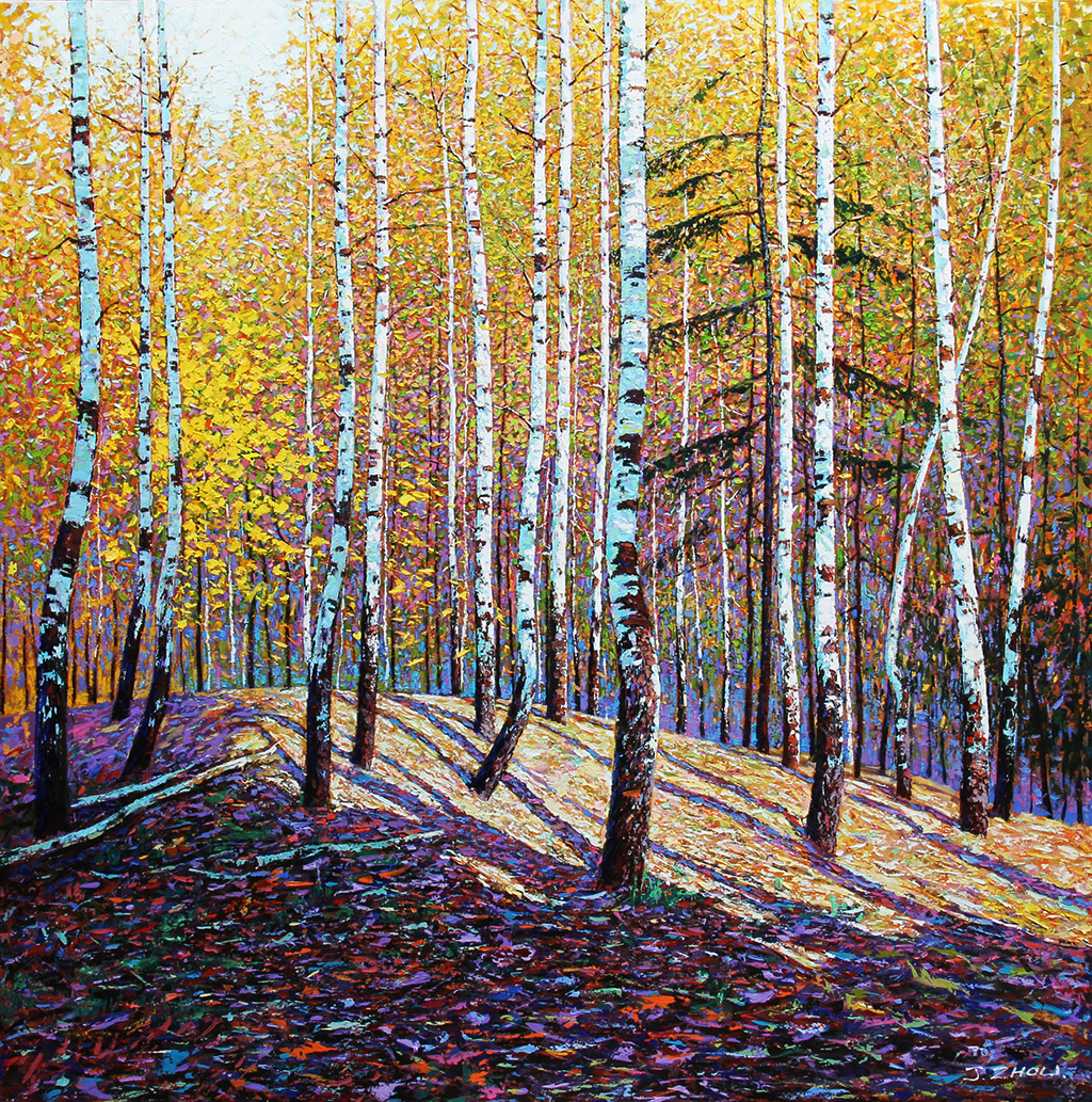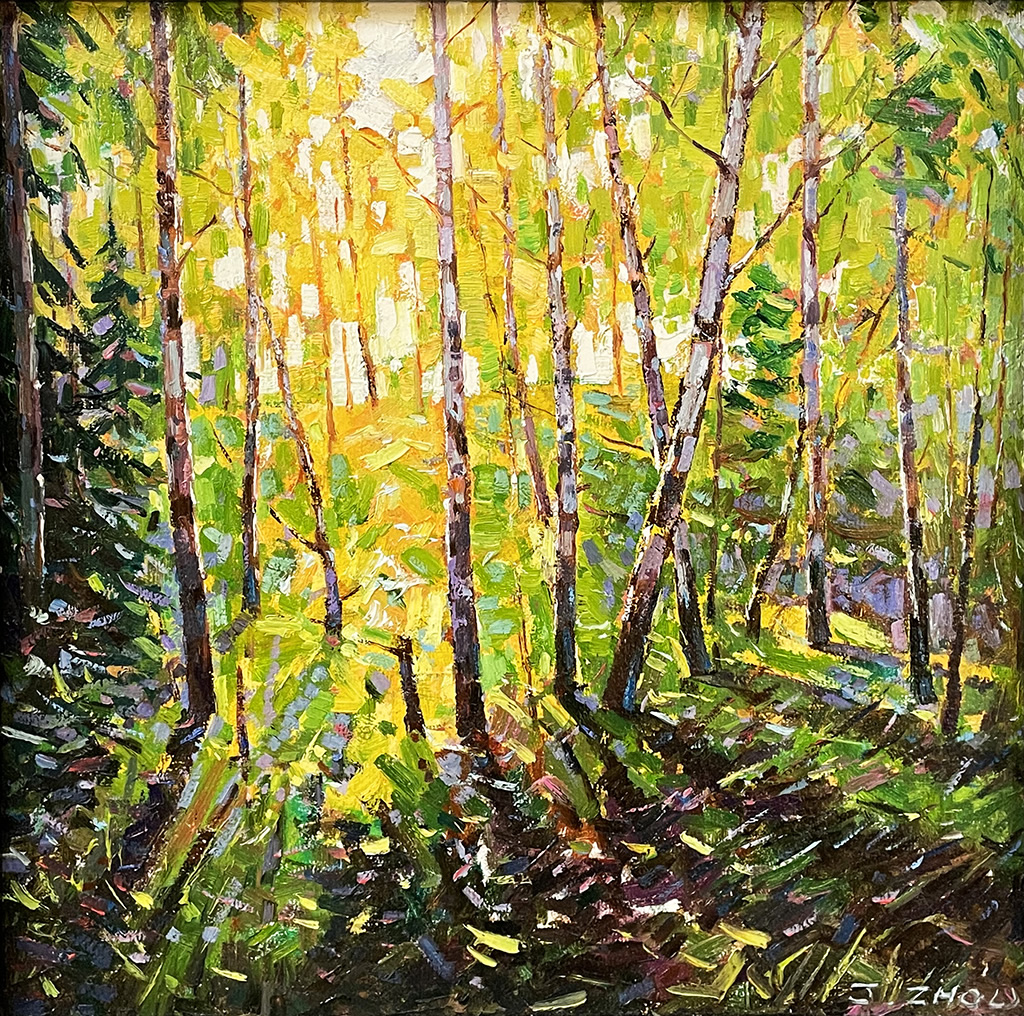 Birches Among the Forest Oil on canvas 12x12 in