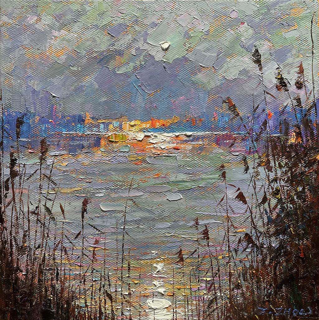 Clouds over the lake I Oil on canvas 12x12 in available