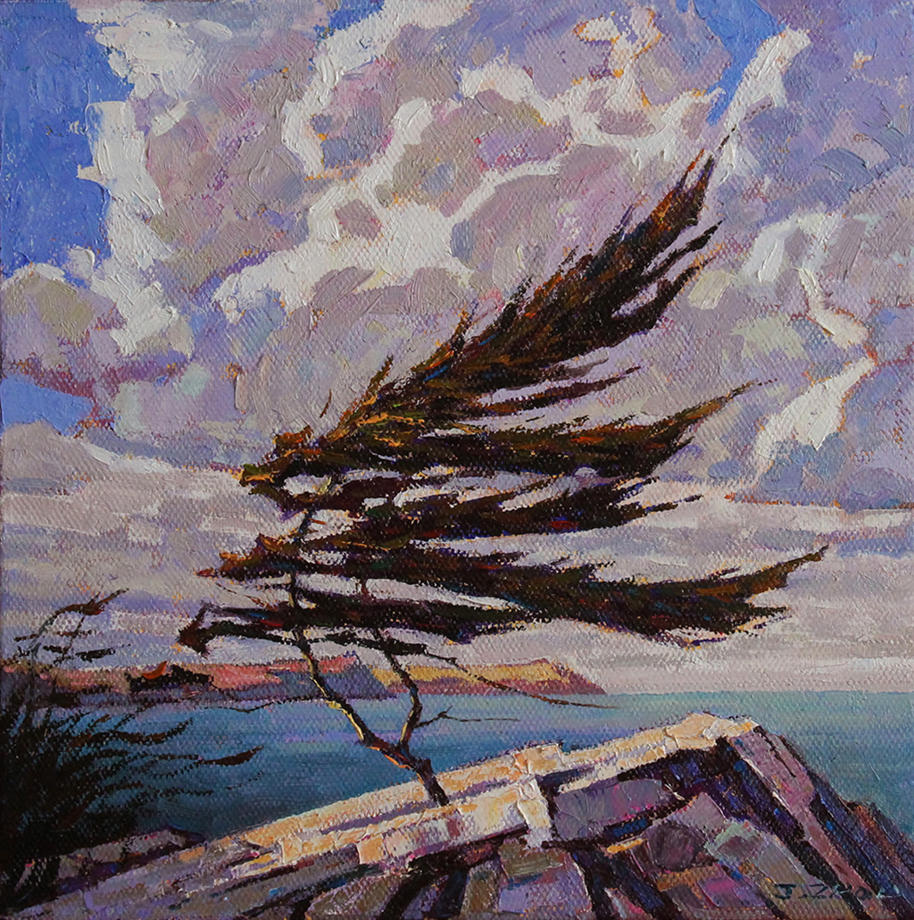 Facing the Wind Oil on canvas 12x12 in