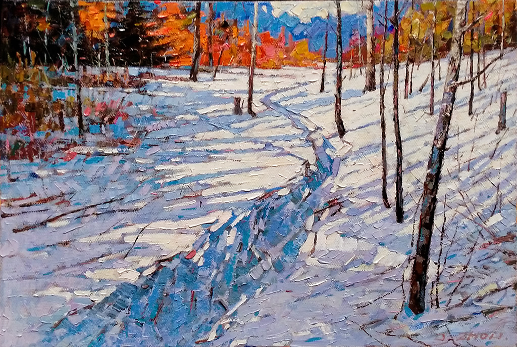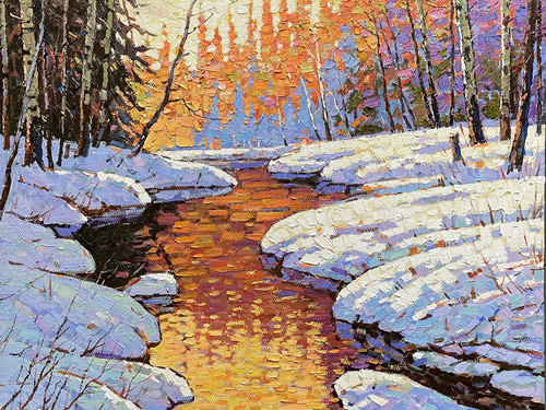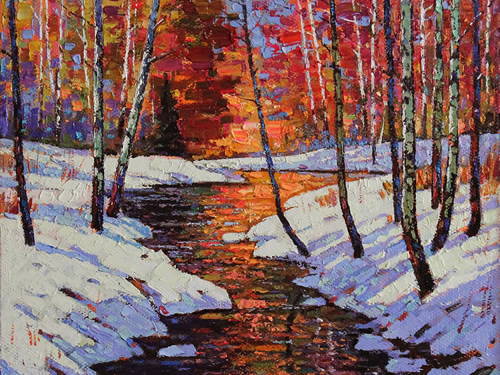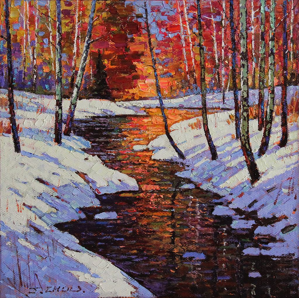 A Glimpse of Winter Oil on canvas 18x18 in available