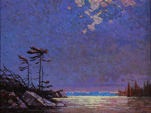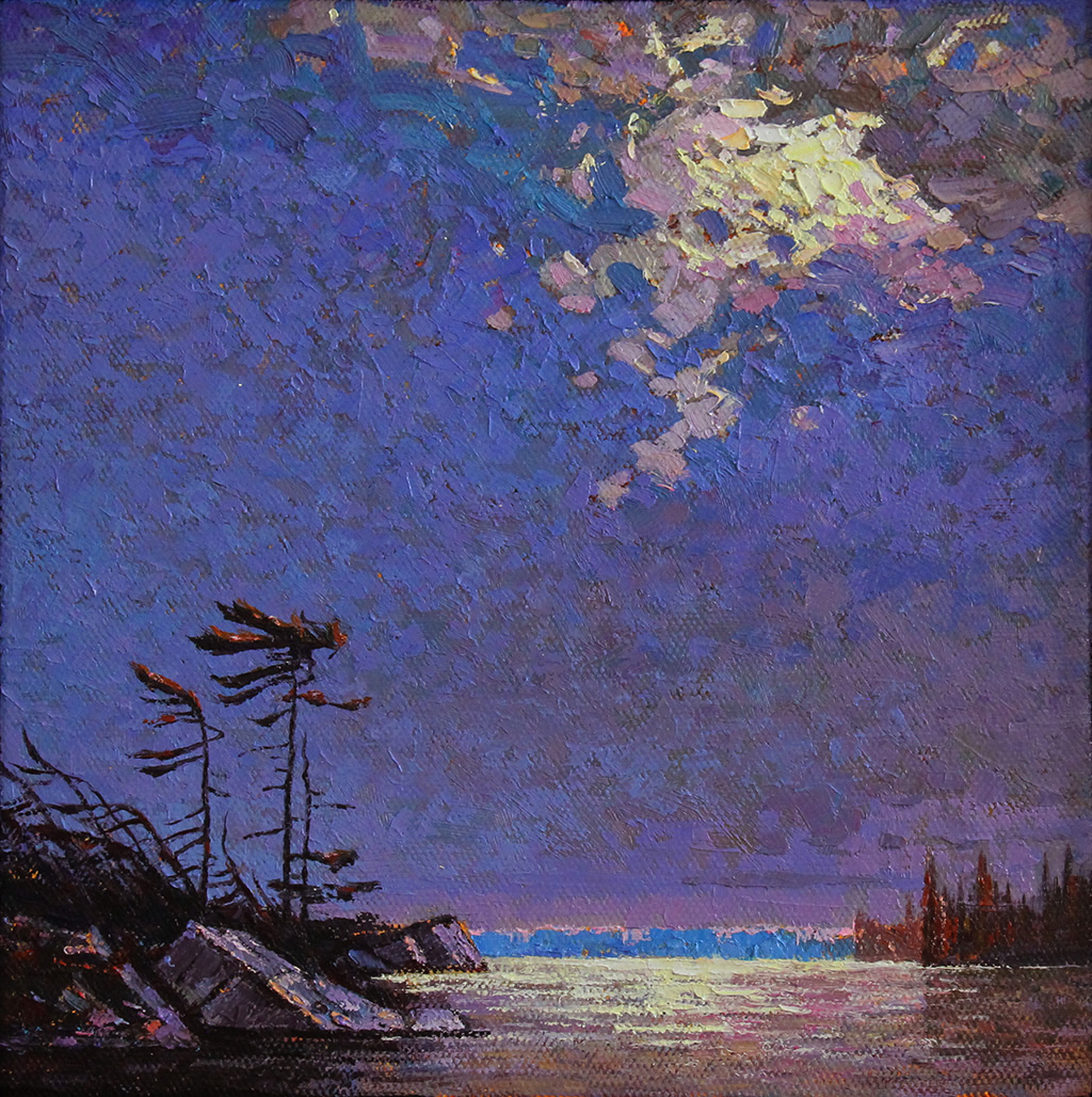 Lakeshore Moonlight Oil on canvas 12x12 in