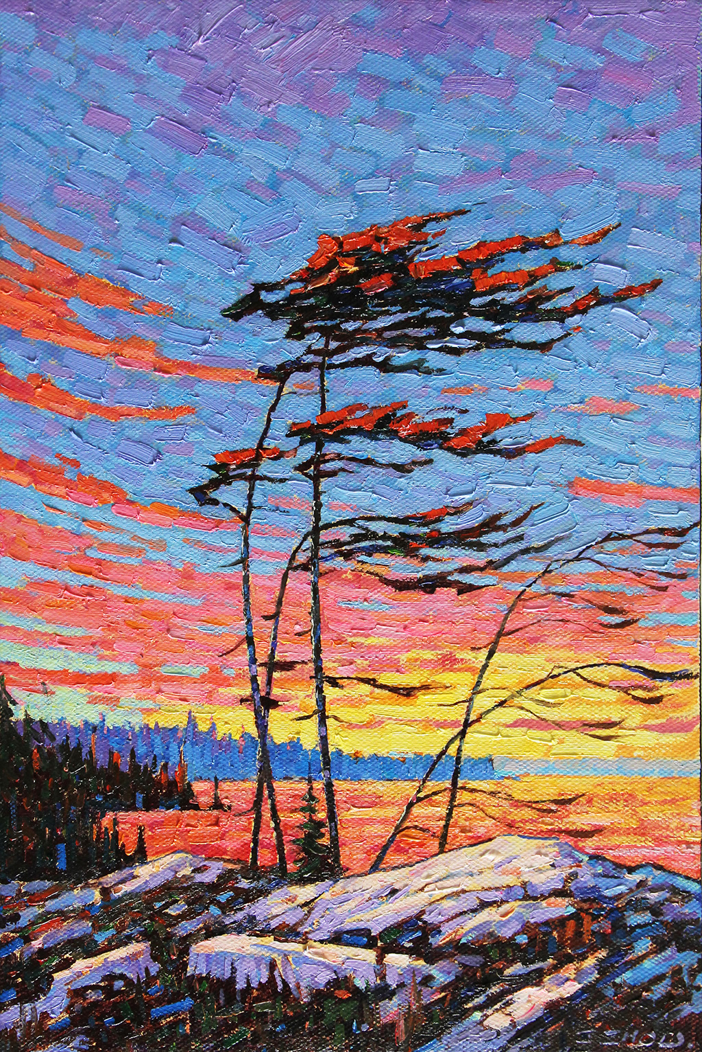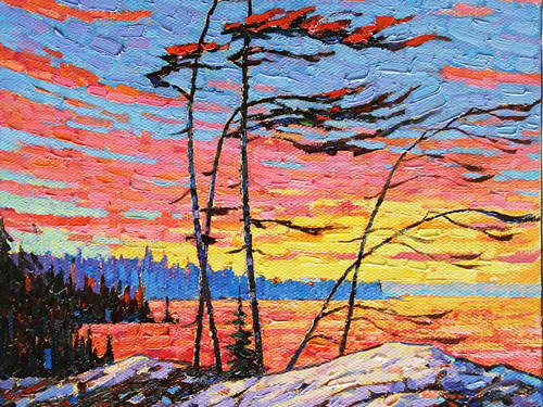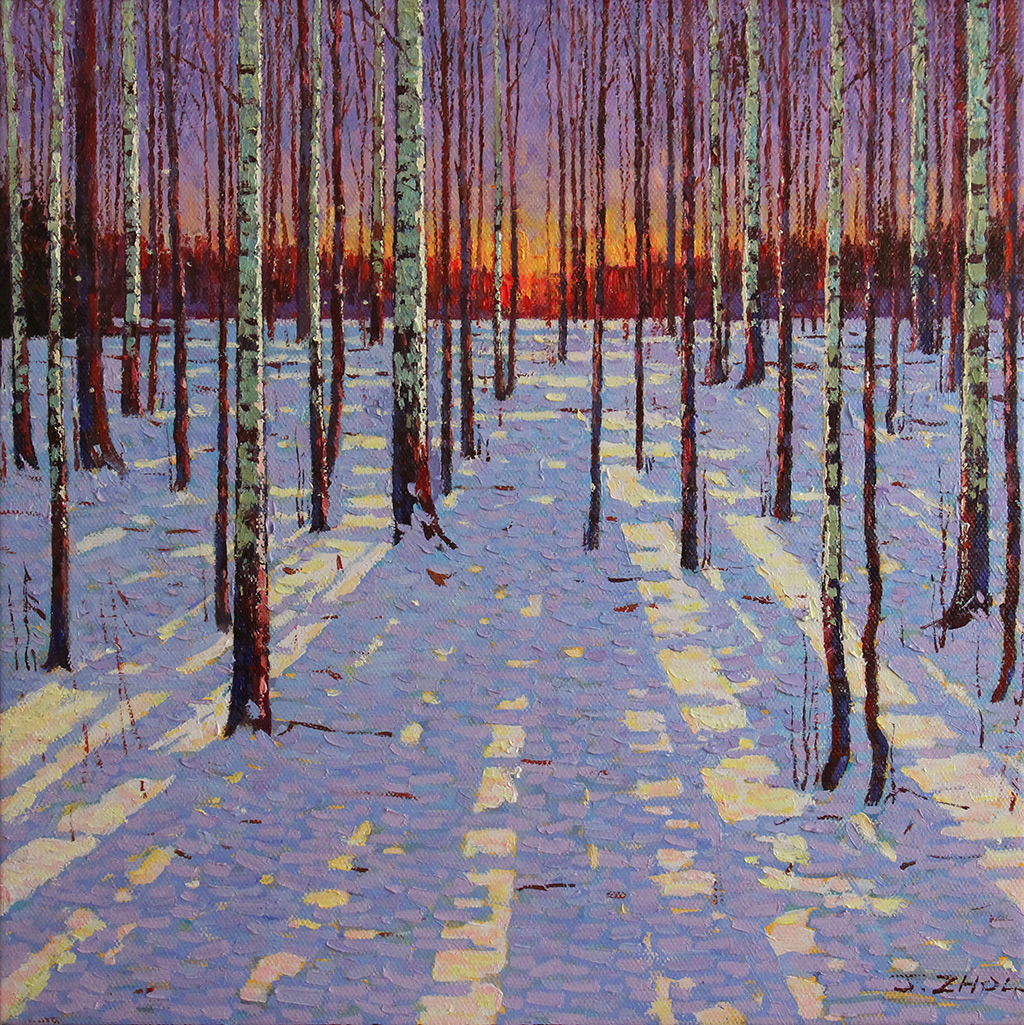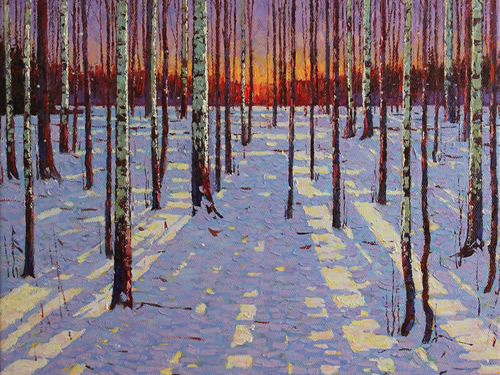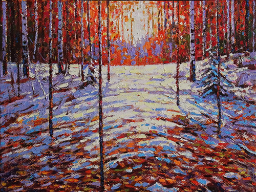 Winter Sunset Oil on canvas 18x18 in